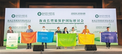 通过此次国际研讨会,该协会也发出号召,希望全球志愿者都能积极加入到海南长臂猿保护中来,为海南长臂猿保护、海南生态文明建设和自由贸易港建设贡献力量。在活动现场,省林业局有关负责人还向海南长臂猿保护志愿者协会会长及协会霸王岭队、青松乡队、海南大学队、海南师范大学队分别授旗。