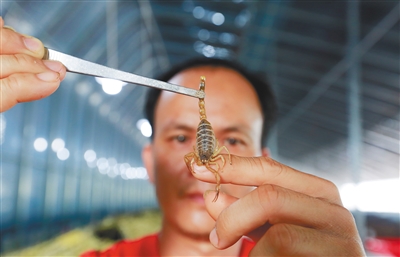 据介绍,蝎子养8-10个月可以上市,目前市场收购800元-900元一公斤。市场空间较大。