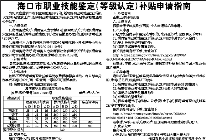 海口市职业技能鉴定(等级认定)补贴申请指南