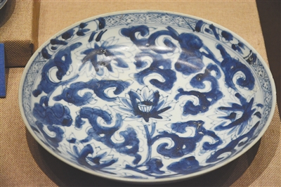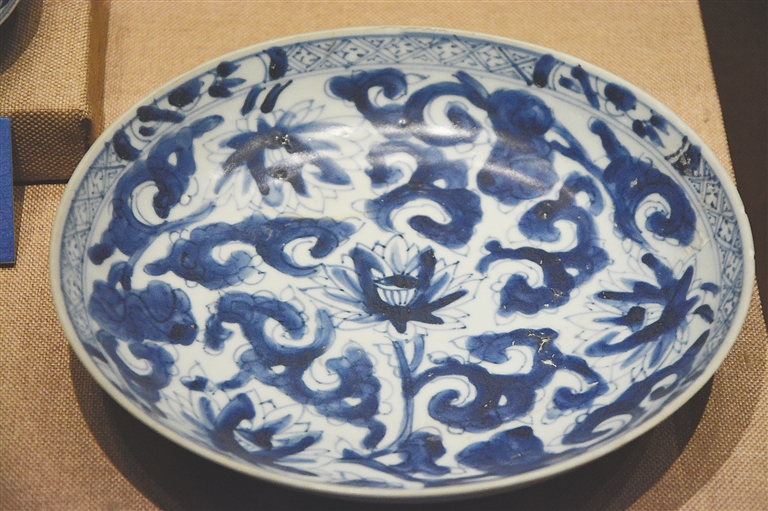 图2 明青花莲纹盘。