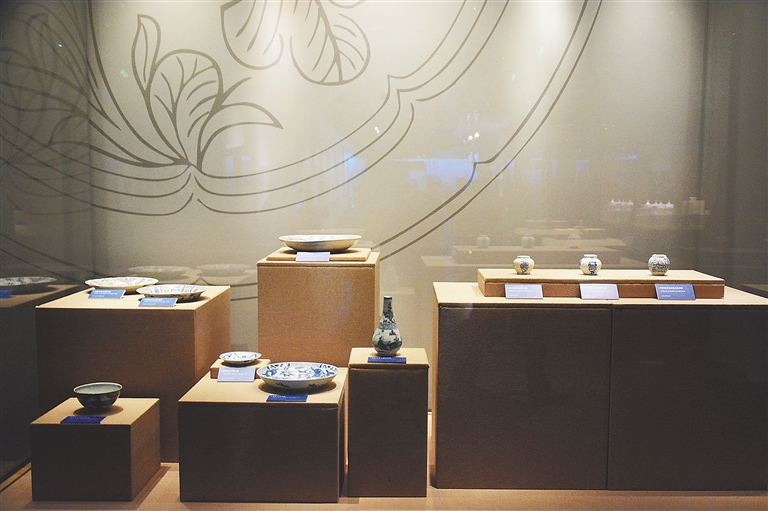 宋代青白釉刻花盘、宋代青釉划花母子盒、元代青釉莲瓣纹双鱼瓷洗、明代青釉菱花口折沿大盘、明代蓝釉印花香插、清代青花细描花卉纹盒、清代青花福禄寿三星盘……此次展出的历年来南海海域出水的陶瓷器可谓品种丰富,涵盖青白瓷、青瓷、青花瓷多个种类,足见当时海上丝绸之路的繁华。这条联系东西的瓷器之路,经过南亚各国,跨越印度洋,直抵西亚及波斯湾,最远可达非洲东海岸,持续延伸至太平洋、印度洋、大西洋的广阔海域。