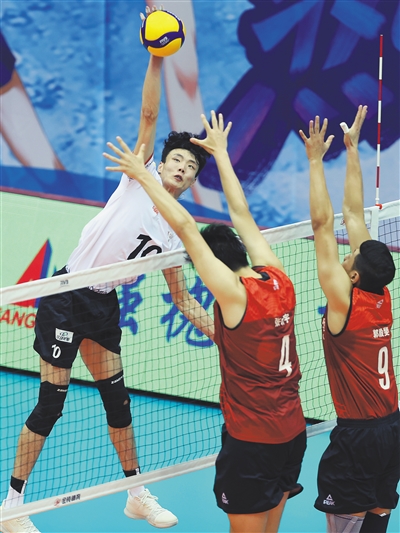 8月24日,在河北省秦皇岛进行的2019-2020赛季中国男子排球超级联赛第二阶段G组比赛中,天津食品集团队以3比0战胜辽宁队。