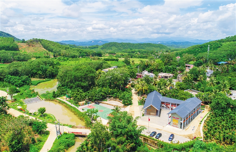 近日,俯瞰正在推进美丽乡村建设的乐东黎族自治县万冲镇抱班村。抱班村三面环山,因地处偏远、交通不便,曾是远近闻名的深度贫困村。近年来,当地政府以“脱贫攻坚+特色产业+民宿”的模式,在此精心打造美丽乡村,发展旅游产业,使得抱班村不仅于2018年完成整村脱贫出列,还入选第二批国家森林乡村名单、被命名为第三批“中国少数民族特色村寨”。今年5月,抱班村获评海南省四椰级乡村旅游点。 本报记者 武威 摄