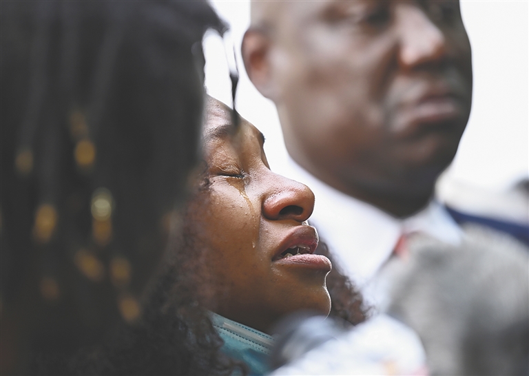 8月25日,布莱克的亲属在美国威斯康星州基诺沙市的新闻发布会上哭泣。