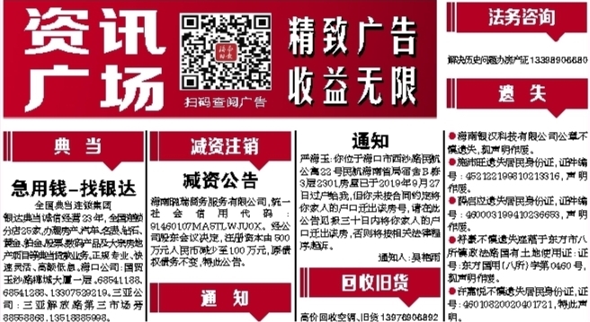海南晓瑞商务服务有限公司,统一社会信用代码:91460107MA5TLWJU0X。经公司股东会议决定,注册资本由500万元人民币减少至100万元,原债权债务不变,特此公告。