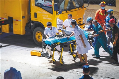 参与现场救援的消防人员告诉记者,由于被困人员较多,最初搜救采取分点作业方式,采用小型破拆工具、徒手挖等方式进行救援。之后才能采用大型吊车将坍塌的房板吊起来搜救。