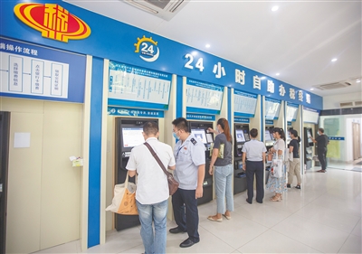 近日,在海口市税务局,市民在使用24小时自助办税终端。