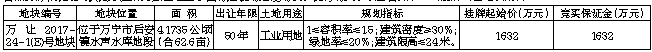 五、竞买保证金:竞买人须按挂牌起始价全额支付竞买保证金,挂牌成交后,该竞买保证金转作土地出让金。