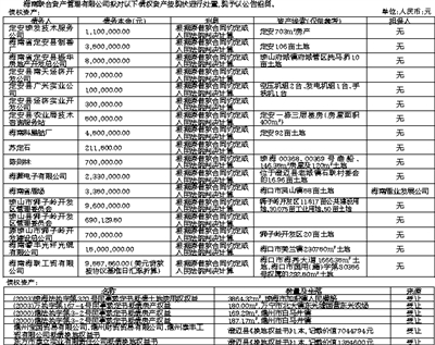 资产线索根据前手权利人移交资产档案记载提供。资产线索的真实性、准确性和有效性,以及资产存在的瑕疵和收购后不能达至预期利益的风险由意向人自行调查判断。交易对象要求具有完全民事行为能力、支付能力的法人、组织或自然人,且以下人员不得购买:国家公务员、金融监管机构工作人员、政法干警、金融资产管理公司的工作人员、国有企业债务人管理层以及参与资产处置工作的律师、会计师、评估师等中介机构等关联人。联系方式:海南省海口市滨海大道81号南洋大厦23楼,联系人:孙女士 0898-68582835。监督电话:0898-68551035。 海南联合资产管理有限公司 2020年8月31日