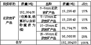 海南展源旅业投资公司罚没矿产品一批。包含四种尺寸规格的玄武岩矿产品整体拍卖,以单价起拍。