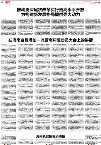 在海南自贸港创一流营商环境动员大会上的讲话