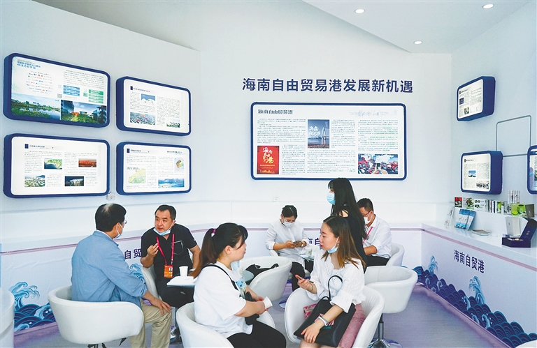 9月5日,在2020中国国际服务贸易交易会国家和省区市专区海南展馆,观众在了解自贸港发展新机遇。
