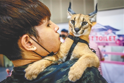 9月5日,一名男子带着自己的宠物参加在泰国曼谷举办的宠物博览会。