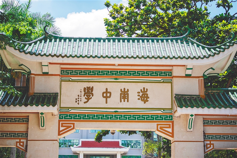 作为历史名校,海南中学有不少标志性老建筑,其中始建于1933年的校门,便见证了海中几十年的变迁成长。而校门上“海南中学”四字铁画银钩,墨光熠熠,成了一批又一批海中学子永恒的梦归处。
