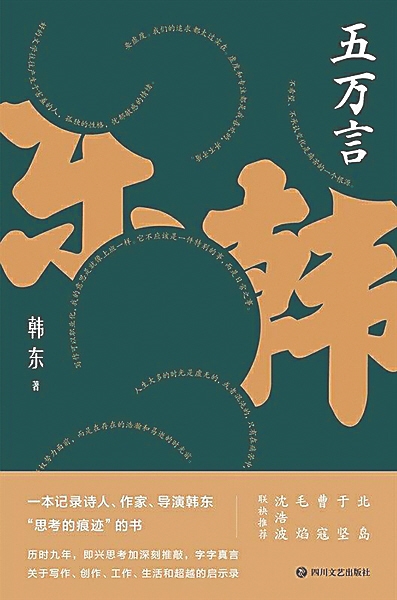 《五万言》是诗人韩东近些年随想的一次汇集。书中内容本是网上即兴发言,有其特定背景,成书时经过去粗取精、剔除背景的再编辑,成为类似格言的一则则短章。论及的内容主要是写作,是一个从事写作四十年的人的经验与心得,其中多有智慧之言,如对语言、文学创意、写作之自觉的思量;更重要之处在于文字间透出的作者的诚实和坦然,这也让整部书带有明显可感的沉静力量。