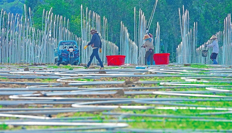 东方市板桥镇新园村曾是深度贫困村,为了壮大集体经济,助力贫困户脱贫,新园村投入扶贫资金,发展兰花、火龙果等产业,成立农民专业合作社,通过提供就业、产业扶贫分红等方式,带动贫困户脱贫。