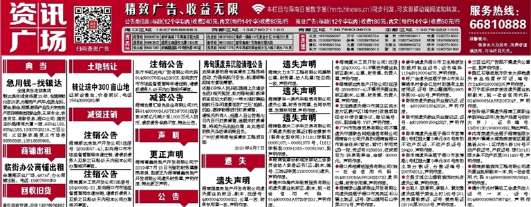 ●三亚运河广告部不慎遗失公章一枚,现声明作废。