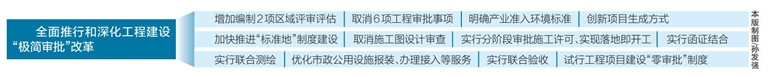“零审批”的最大的特点在于,建设项目的参与各方自我在技术条件跟法律规范方面进行自我把控。“取消了审批环节,将促成政府职能的重大转变。”顾刚表示,实施“零审批”,是对传统审批观念的突重大突破,项目的参与各方作出相应承诺后自主实施,政府将集中精力进行事中事后监管,“这对一些时效要求高的项目来说是一个重大利好。”