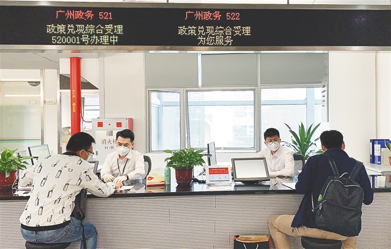 在广州市政务服务中心5楼,广州文华东方酒店财务部薪职主管李燕娟正在“政策兑现综合办理”窗口办理业务,她说:“非常方便,8月中旬,我刚为公司3位境外人才办理粤港澳大湾区人才个税补贴,提前来电向窗口咨询,按照清单准备好材料,来到政务中心就能快速办结,不用以前那样来回跑多个部门!”