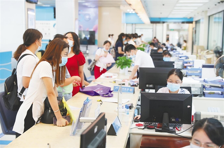 9月6日,海南日报采访组走进广州市政务服务中心,发现各个服务窗口并未出现市民排队办理业务的现象。
