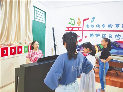 如何“撬”开孩子们的嘴?王杨颖想利用兴趣小组的形式带他们重新认识音乐这门课。刚开始,报名参加兴趣小组的学生寥寥无几。“我只能一个个劝说,告诉他们以后可以出去演出。”王杨颖说,学校学生大多来自附近黎族村庄,“见世面”的机会少,一直渴望能看看山外的世界。