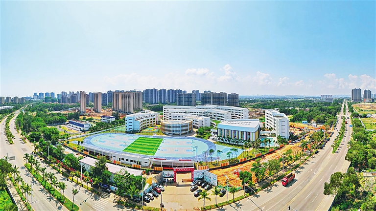 “我们办学理念就是办让学生终身受益的教育,把学校打造成让人民满意的学校,探索一条城郊九年一贯制学校发展之路。”海南师大海口新海学校负责人蔡石云介绍,未来,学校除了把立德树人融入学校教育教学全过程,还将挖掘学生潜在优势,聘请外教和海师外国语学院师生对学生进行英语及其他语种的口语训练,提升口语交际水平;聘请海师美术学院、音乐学院师生对有一定艺术潜质的学生进行定制化的艺术教育,建立学校艺术团;积极组织学生参加体育锻炼,对有体育特长或特殊禀赋的学生进行重点培养,成立若干个兴趣小组;加强校本课程建设,3至5年建成新海“拓展课程超市”,最大限度满足学生个性化发展需求。