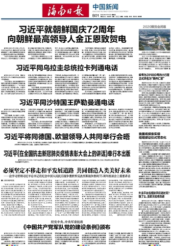 | 海南日报 中国新闻 013 2020-09-101 2020年09月10日 星期四 |