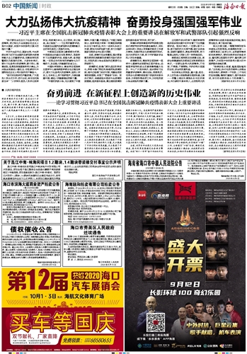 | 海南日报 中国新闻时政 014 2020-09-101 2020年09月10日 星期四 |