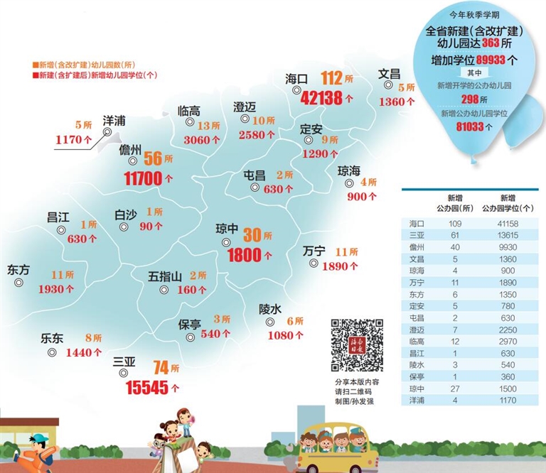 特别是,今年以来,为进一步满足海南百姓对上公办幼儿园的热切期盼,落实“公办幼儿园在园幼儿占比50%、普惠性幼儿园覆盖率80%”的国家要求,让更多孩子能够接受普惠性学前教育,各级党委、政府和教育部门更是多措并举推动公办幼儿园和普惠性幼儿园建设工作。