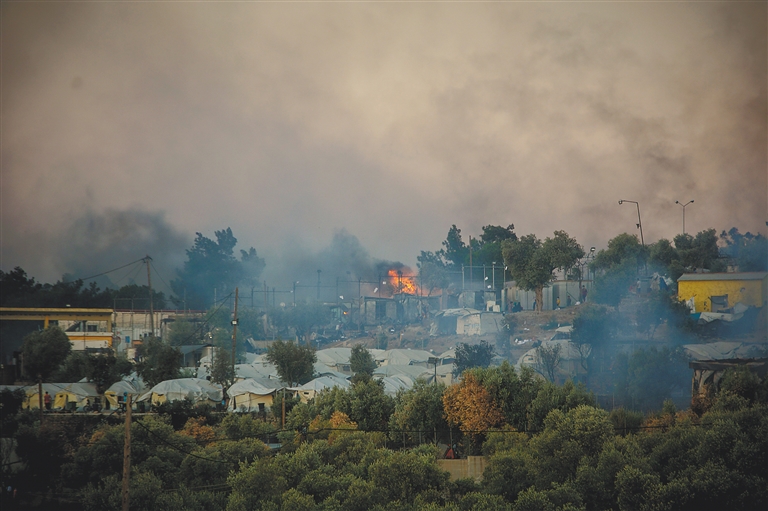 位于希腊莱斯沃斯岛的莫里亚难民营9日凌晨起火,这座希腊最大难民营几乎完全烧毁。希腊政府需要紧急安置超过1.2万名难民和非法移民,同时防止新冠病毒传播。 新华社发