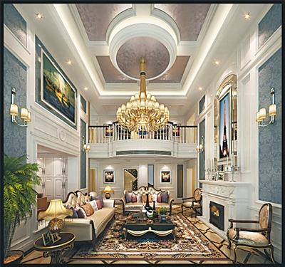 挑空设计的客厅,通常会有较大面积的墙壁。为了避免室内空间显得过于空旷,应对墙面进行一些设计。例如,可以涂刷设计主题墙或用彩绘装饰白色墙面等。