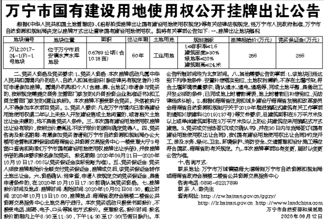 关于《琼海市嘉积城区滨河片区控制性详细规划(修编)》BH-E0707地块(局部)用地规划条件修改的公示