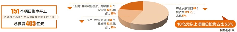 本次集中开工项目151个,是近两年来集中开工项目数量最多的一次,其中10亿元以上项目总投资占比53%,产业发展项目总投资占比57%,项目质量进一步提升……