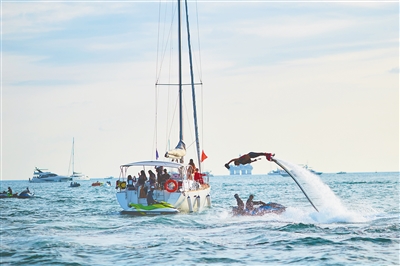 海南新航家游艇有限公司负责人黄峰介绍:“在三亚,游客可以选择拼艇或者包艇出海,其中几组家庭共同乘坐一艘游艇出海的方式最受市场欢迎,这种方式俗称‘散拼’。它既能满足普通游客体验游艇出海的好奇心,也让游艇旅游走进更多平民百姓的生活,开拓出一片新的市场空间。”