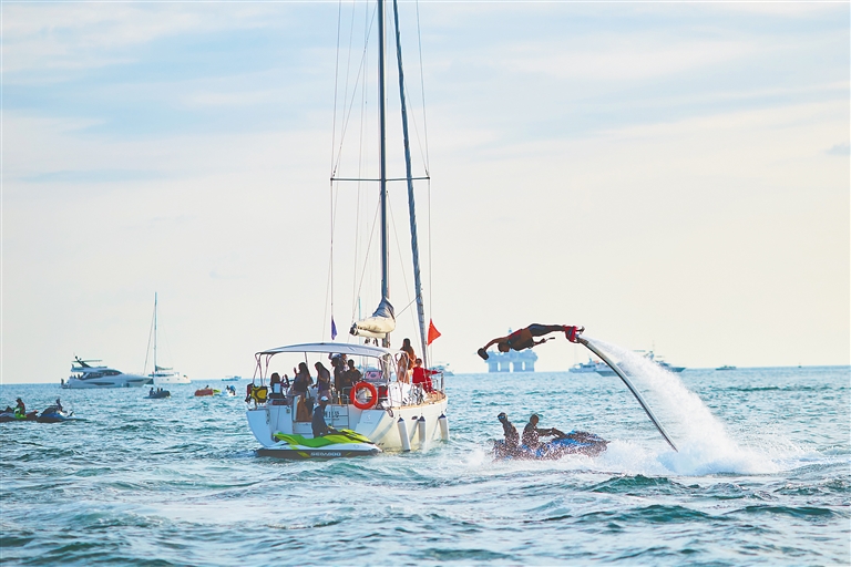 傍晚时分,伴随着落日余晖,在三亚鸿洲国际游艇会码头,一艘又一艘游艇陆续回港,游玩归来的游客意犹未尽。“乘游艇出海,既能欣赏沿岸城市风光美景,又能在海上体验摩托艇、香蕉船、垂钓等项目,全方位感受大海的魅力。”游客张驰说。
