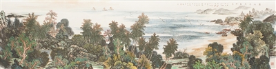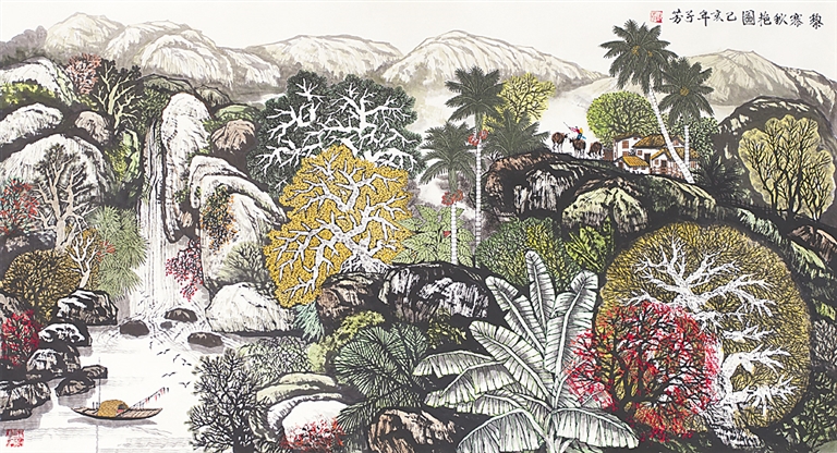 山水画《碧海连天万物春》《万山和鸣图》被悬挂在博鳌国宾馆国宾厅内,这两幅作品长12米,高3.6米,构想、反复提炼、创作……历经30个日夜,画家们完成了这两幅海南大型山水画题材的宏伟巨制。作品悬挂安装落成后,为国宾厅再添靓色,海南的绿水青山仿佛被“搬进”了这庄重大气的宴会厅内。