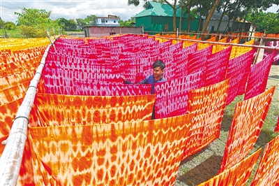 在孟加拉国中部的纳拉扬甘杰地区,当地村庄还保留着手工印染的工艺。新华社发