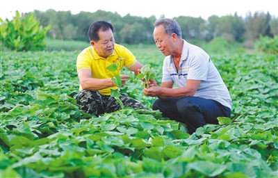 “在品种、栽种规格、施肥等种植技术上严格按标准来,要做就要做示范引领。”杨英春说,他对农户统一提供种苗、技术,并保价回收,保证农户收入。同时,他还率先采用滴管、喷灌技术种植地瓜,并将技术推广给农户。