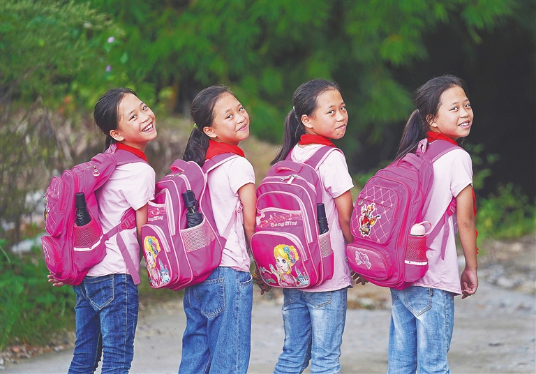 如今,已经十岁的四胞胎姐妹身体好了许多,在乡里的中心小学上学。
