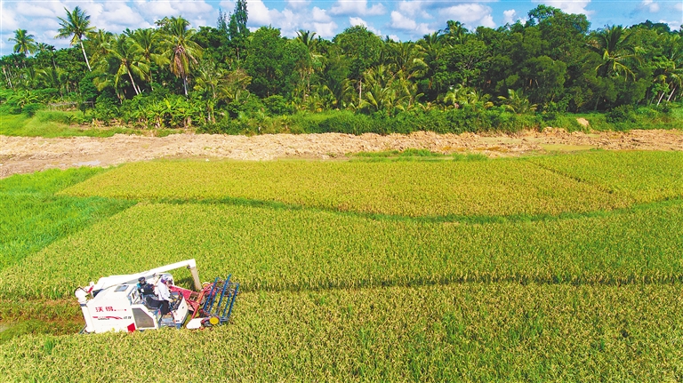 9月16日,琼海市嘉积镇龙寿村的农民在抢收晚稻。眼下正是秋收时节,琼海市的农民正加快秋收进度,确保粮食颗粒归仓。