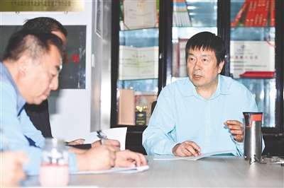 9月16日,李晓群(右)在和员工讨论节约网下一阶段的工作事项。