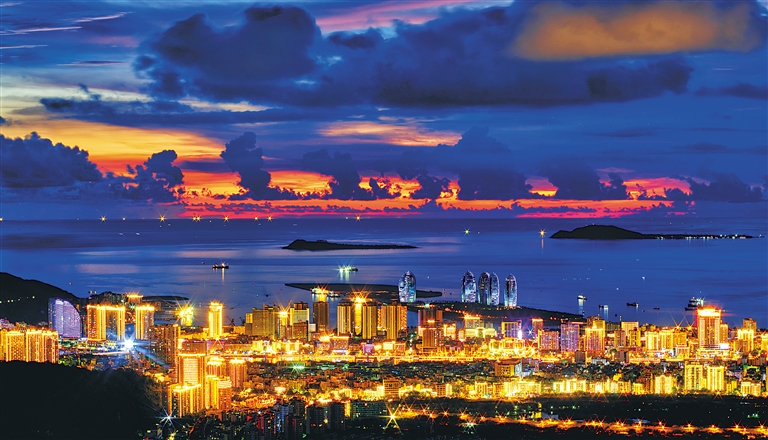 华灯初上,灯光点亮的不仅是三亚的夜色,更是浪漫天涯的“夜经济”。 百度地图此前发布的《2020年第二季度中国城市活力研究报告》显示,三亚的夜生活恢复指数排名全国第一。如今,三亚将点亮夜间经济作为旅游发展新业态、寻找新的经济增长点的有效手段,促使鹿城越夜越美丽。本报记者 封烁 摄