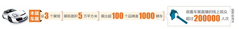 设3个展馆,展陈面积5万平方米,展出超100个品牌共1000多辆车。