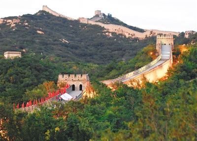 9月20日,旗手们在长城上传递2022年北京冬奥会会旗。