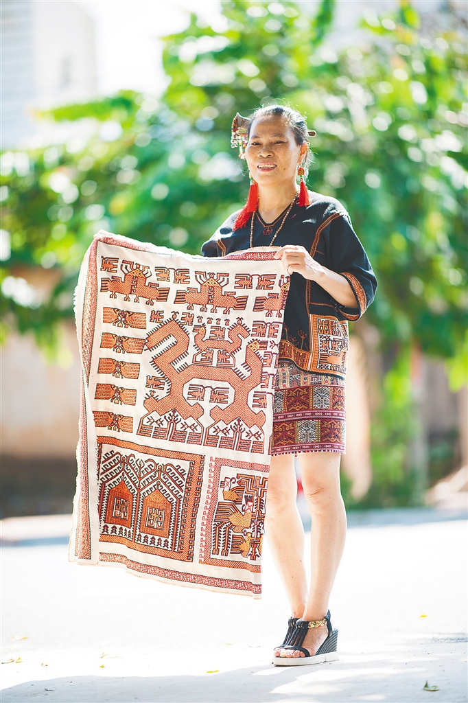 白沙文化馆馆长符少玲介绍,双面绣的图案既反映了黎族的精神信仰,也体现了王瑞妹等黎族织娘的聪明才智和创造精神。