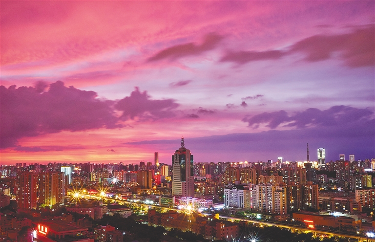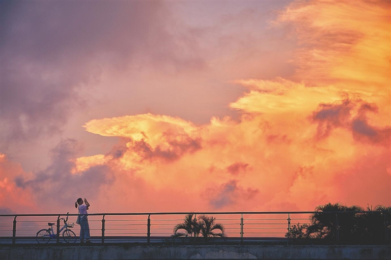 此时抬头,总能看到大幅的垂天彩云,光影变幻间色彩流动。有时从云端激射出万道红光,火烧云气势磅礴,如火山岩浆从天际泄出;有时是一片浪漫的粉红色铺满天空,引人无限遐想……这些是属于海南盛夏的万种风情。