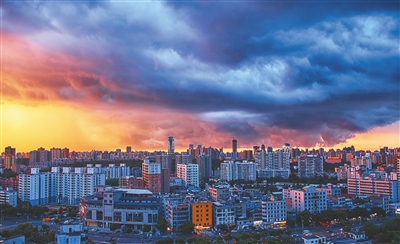 出现在海口上空的雷暴云。雷暴云是在不稳定大气中产生的强烈对流性天气现象,它的形成时间快速,场景非常壮观,雷暴发生时可伴随有雷击、闪电、强风和强降水等强对流天气。 |