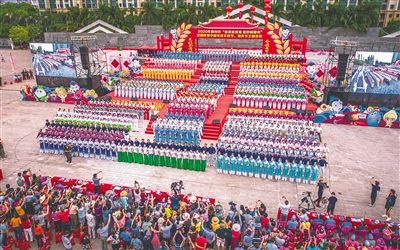 本报那大9月21日电 (记者刘袭 特约记者李珂)9月21日下午,2020年儋州市迎国庆暨中国农民丰收节、调声节主题活动在儋州市文化广场启动。在活动启动仪式上,由该市各乡镇农民组建的30支儋州调声演唱队共约千人齐唱调声,唱出了65万儋州农民欢度农民丰收节的喜悦之情。