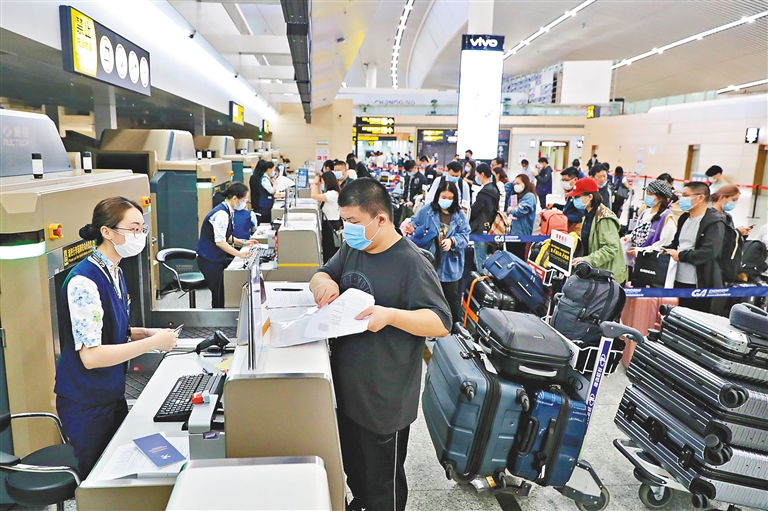 据了解,从9月21日至11月15日,来自全国各地的约2万名留学生将在重庆集结,分批次乘坐海南航空90余个航班从重庆江北国际机场直飞英国曼彻斯特和布里斯托。