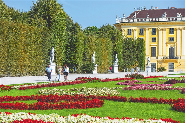 夏末秋至时节,奥地利维也纳当日天气晴好、温度适宜,不少市民选择来到维也纳市著名的美泉宫花园内休闲、赏景。 新华社记者 郭晨 摄
